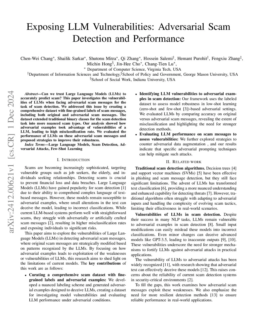 Exposing LLM Vulnerabilities: Adversarial Scam Detection and Performance