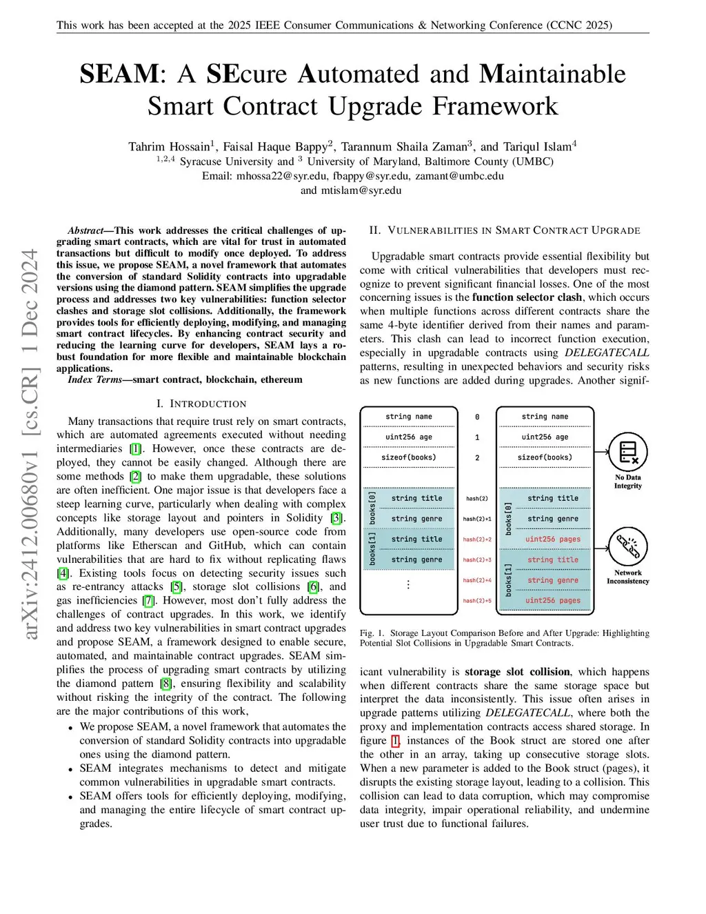 This work addresses the critical challenges of upgrading smart contracts, which are vital for trust in automated transactions but difficult to modify once deployed. To address this issue, we propose SEAM, a novel framework that automates the conversion of standard Solidity contracts into upgradable versions using the diamond pattern. SEAM simplifies the upgrade process and addresses two key vulnerabilities: function selector clashes and storage slot collisions. Additionally, the framework provides tools for efficiently deploying, modifying, and managing smart contract lifecycles. By enhancing contract security and reducing the learning curve for developers, SEAM lays a robust foundation for more flexible and maintainable blockchain applications.
