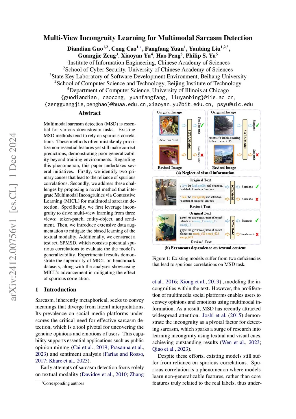 Multimodal sarcasm detection (MSD) is essential for various downstream tasks. Existing MSD methods tend to rely on spurious correlations. These methods often mistakenly prioritize non-essential features yet still make correct predictions, demonstrating poor generalizability beyond training environments. Regarding this phenomenon, this paper undertakes several initiatives. Firstly, we identify two primary causes that lead to the reliance of spurious correlations. Secondly, we address these challenges by proposing a novel method that integrate Multimodal Incongruities via Contrastive Learning (MICL) for multimodal sarcasm detection. Specifically, we first leverage incongruity to drive multi-view learning from three views: token-patch, entity-object, and sentiment. Then, we introduce extensive data augmentation to mitigate the biased learning of the textual modality. Additionally, we construct a test set, SPMSD, which consists potential spurious correlations to evaluate the the model's generalizability. Experimental results demonstrate the superiority of MICL on benchmark datasets, along with the analyses showcasing MICL's advancement in mitigating the effect of spurious correlation.