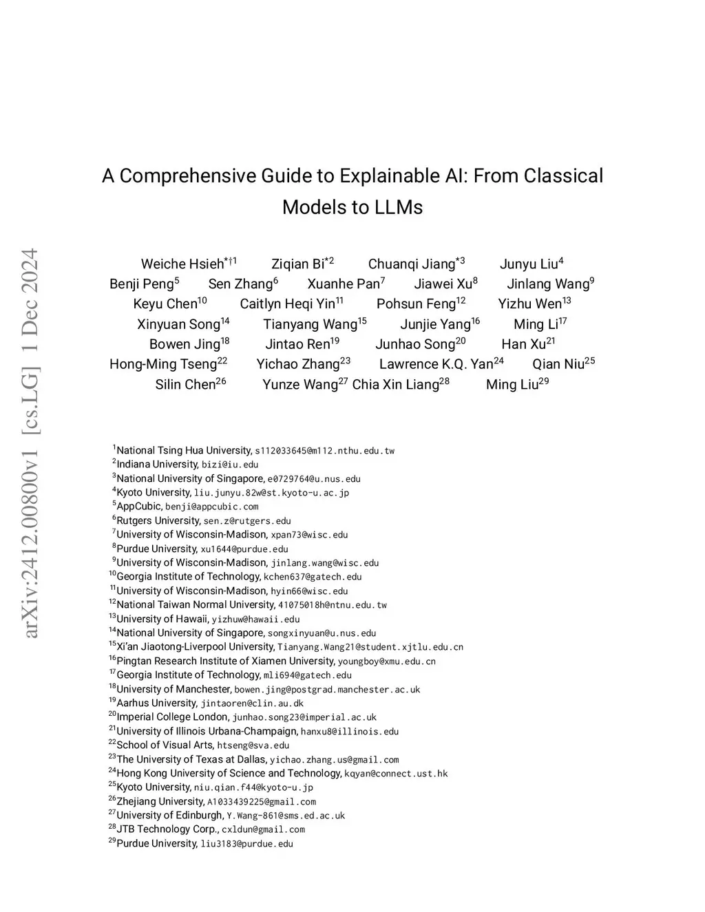 Explainable Artificial Intelligence (XAI) addresses the growing need for transparency and interpretability in AI systems, enabling trust and accountability in decision-making processes. This book offers a comprehensive guide to XAI, bridging foundational concepts with advanced methodologies. It explores interpretability in traditional models such as Decision Trees, Linear Regression, and Support Vector Machines, alongside the challenges of explaining deep learning architectures like CNNs, RNNs, and Large Language Models (LLMs), including BERT, GPT, and T5. The book presents practical techniques such as SHAP, LIME, Grad-CAM, counterfactual explanations, and causal inference, supported by Python code examples for real-world applications. Case studies illustrate XAI's role in healthcare, finance, and policymaking, demonstrating its impact on fairness and decision support. The book also covers evaluation metrics for explanation quality, an overview of cutting-edge XAI tools and frameworks, and emerging research directions, such as interpretability in federated learning and ethical AI considerations. Designed for a broad audience, this resource equips readers with the theoretical insights and practical skills needed to master XAI. Hands-on examples and additional resources are available at the companion GitHub repository: https://github.com/Echoslayer/XAI_From_Classical_Models_to_LLMs.