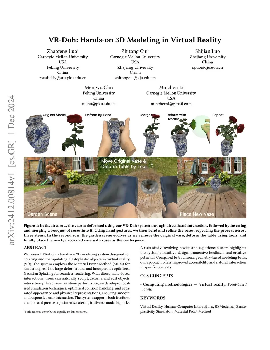 VR-Doh: Hands-on 3D Modeling in Virtual Reality