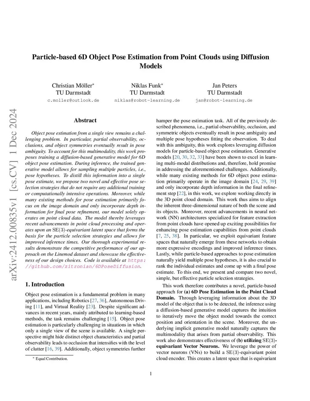 Particle-based 6D Object Pose Estimation from Point Clouds using