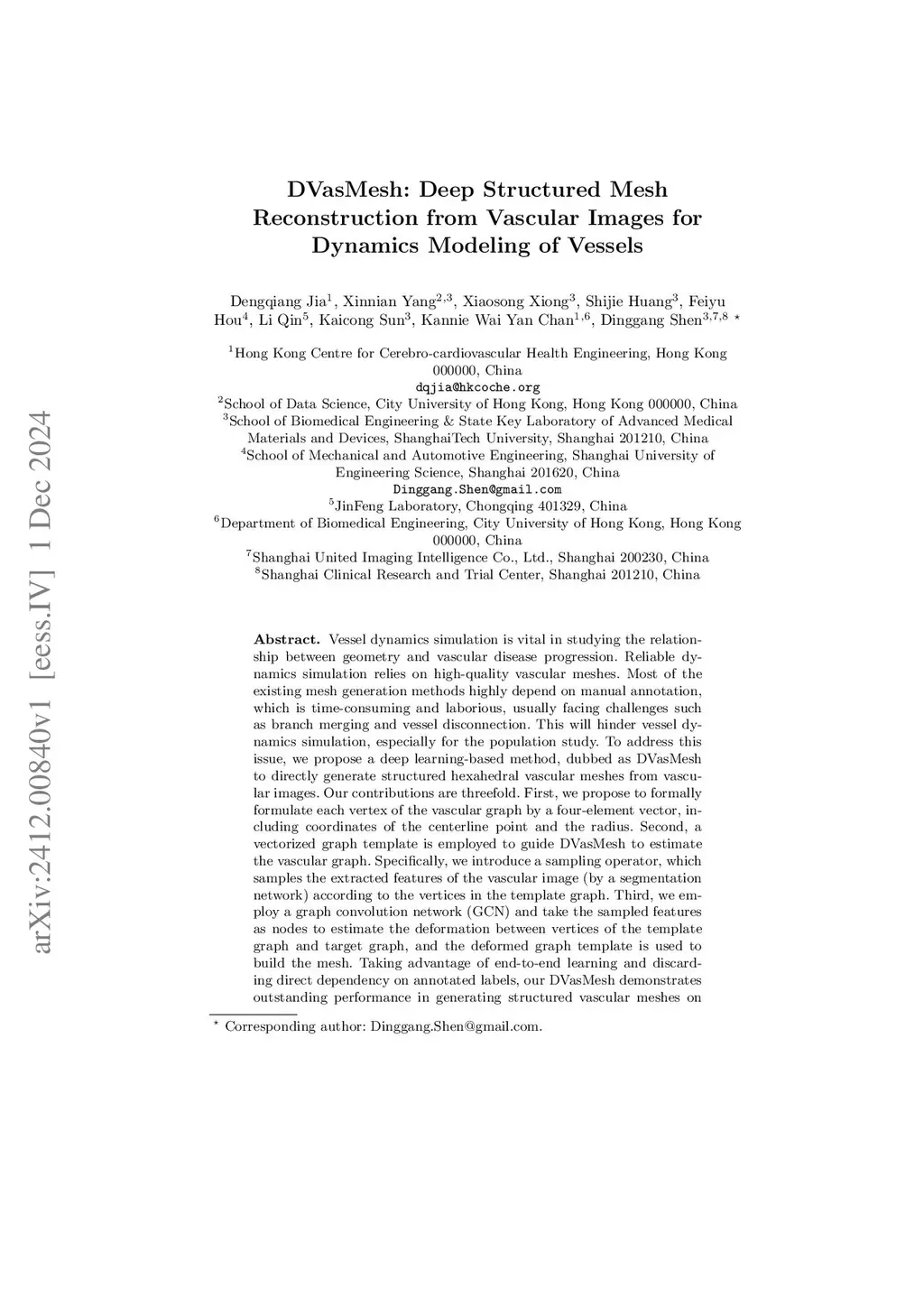 DVasMesh: Deep Structured Mesh Reconstruction from Vascular Images for