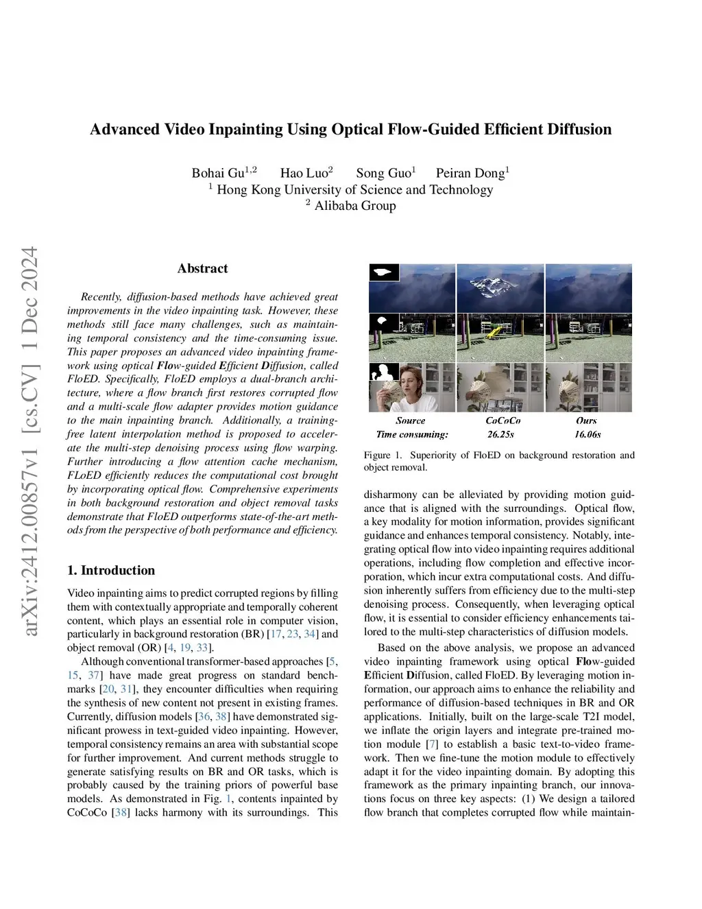 Coherent Video Inpainting Using Optical Flow-Guided Efficient Diffusion