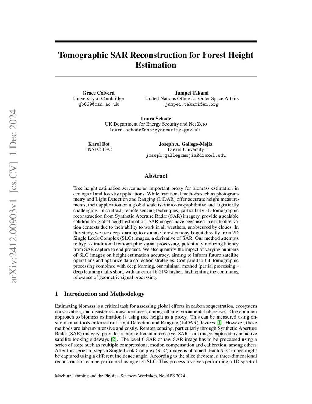 Tree height estimation serves as an important proxy for biomass estimation in ecological and forestry applications. While traditional methods such as photogrammetry and Light Detection and Ranging (LiDAR) offer accurate height measurements, their application on a global scale is often cost-prohibitive and logistically challenging. In contrast, remote sensing techniques, particularly 3D tomographic reconstruction from Synthetic Aperture Radar (SAR) imagery, provide a scalable solution for global height estimation. SAR images have been used in earth observation contexts due to their ability to work in all weathers, unobscured by clouds. In this study, we use deep learning to estimate forest canopy height directly from 2D Single Look Complex (SLC) images, a derivative of SAR. Our method attempts to bypass traditional tomographic signal processing, potentially reducing latency from SAR capture to end product. We also quantify the impact of varying numbers of SLC images on height estimation accuracy, aiming to inform future satellite operations and optimize data collection strategies. Compared to full tomographic processing combined with deep learning, our minimal method (partial processing + deep learning) falls short, with an error 16-21\% higher, highlighting the continuing relevance of geometric signal processing.