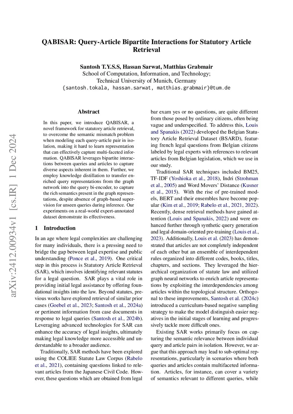 QABISAR: Query-Article Bipartite Interactions for Statutory Article