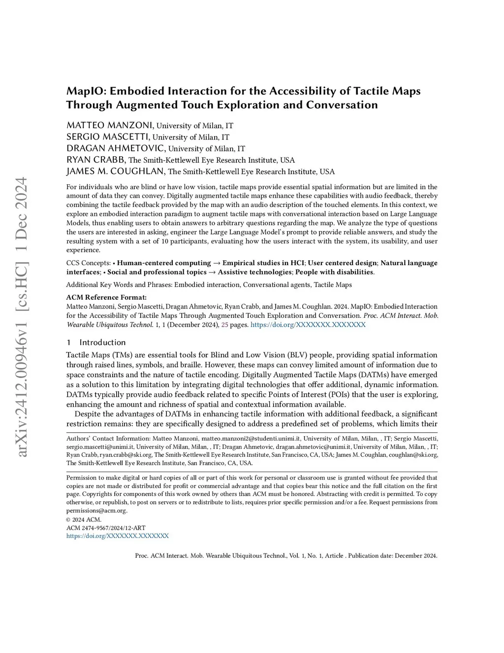 MapIO: Embodied Interaction for the Accessibility of Tactile Maps