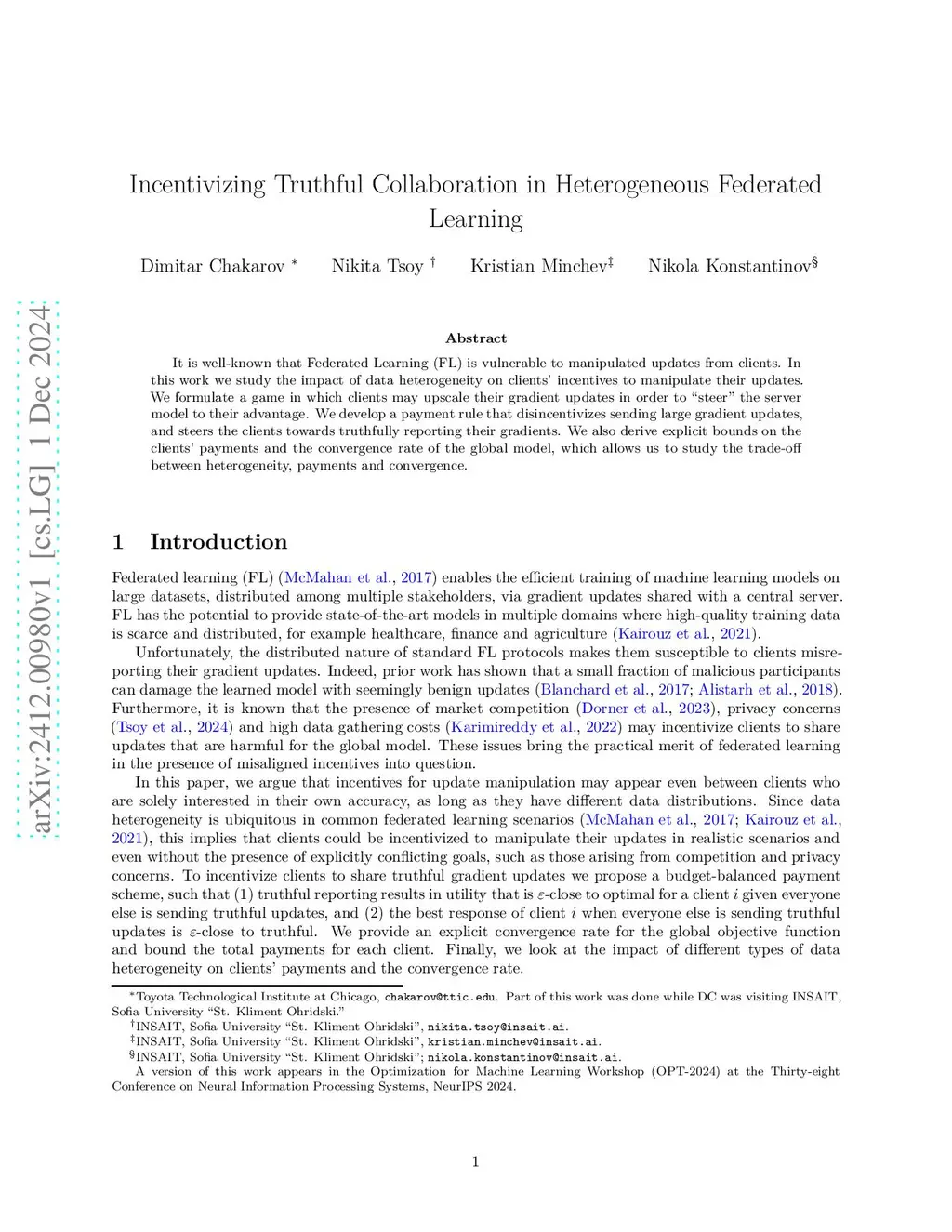 Federated learning (FL) is a distributed collaborative learning method, where multiple clients learn together by sharing gradient updates instead of raw data. However, it is well-known that FL is vulnerable to manipulated updates from clients. In this work we study the impact of data heterogeneity on clients' incentives to manipulate their updates. First, we present heterogeneous collaborative learning scenarios where a client can modify their updates to be better off, and show that these manipulations can lead to diminishing model performance. To prevent such modifications, we formulate a game in which clients may misreport their gradient updates in order to "steer" the server model to their advantage. We develop a payment rule that provably disincentivizes sending modified updates under the FedSGD protocol. We derive explicit bounds on the clients' payments and the convergence rate of the global model, which allows us to study the trade-off between heterogeneity, payments and convergence. Finally, we provide an experimental evaluation of the effectiveness of our payment rule in the FedSGD, median-based aggregation FedSGD and FedAvg protocols on three tasks in computer vision and natural language processing. In all cases we find that our scheme successfully disincentivizes modifications.