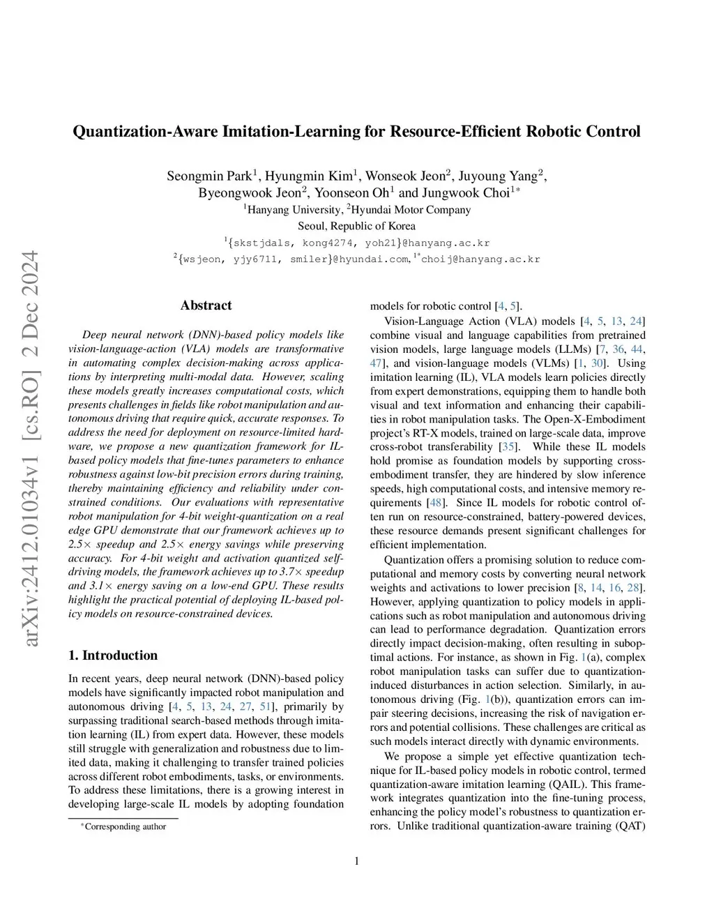 Quantization-Aware Imitation-Learning for Resource-Efficient Robotic