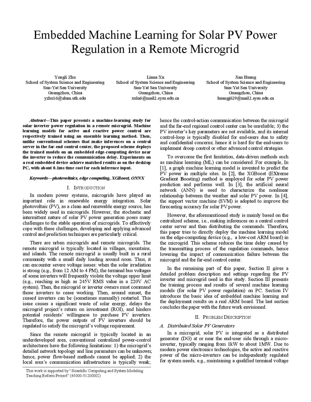 Embedded Machine Learning for Solar PV Power Regulation in a Remote