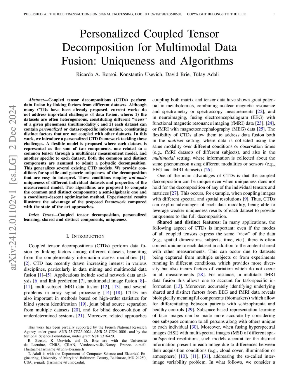 Coupled tensor decompositions (CTDs) perform data fusion by linking factors from different datasets. Although many CTDs have been already proposed, current works do not address important challenges of data fusion, where: 1) the datasets are often heterogeneous, constituting different "views" of a given phenomena (multimodality); and 2) each dataset can contain personalized or dataset-specific information, constituting distinct factors that are not coupled with other datasets. In this work, we introduce a personalized CTD framework tackling these challenges. A flexible model is proposed where each dataset is represented as the sum of two components, one related to a common tensor through a multilinear measurement model, and another specific to each dataset. Both the common and distinct components are assumed to admit a polyadic decomposition. This generalizes several existing CTD models. We provide conditions for specific and generic uniqueness of the decomposition that are easy to interpret. These conditions employ uni-mode uniqueness of different individual datasets and properties of the measurement model. Two algorithms are proposed to compute the common and distinct components: a semi-algebraic one and a coordinate-descent optimization method. Experimental results illustrate the advantage of the proposed framework compared with the state of the art approaches.