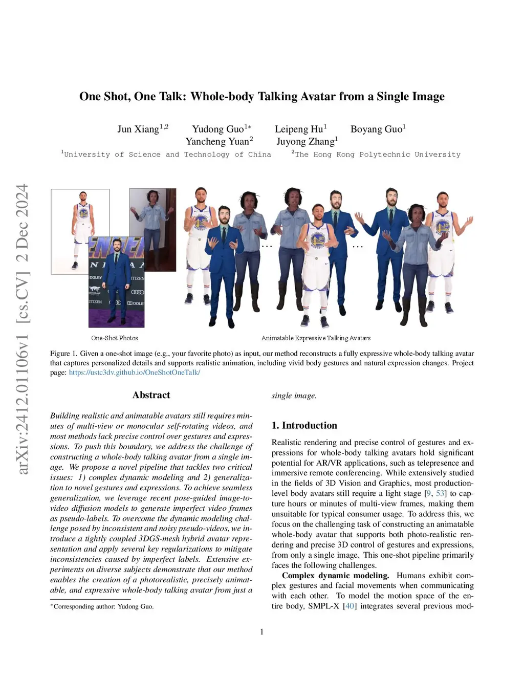 One Shot, One Talk: Whole-body Talking Avatar from a Single Image