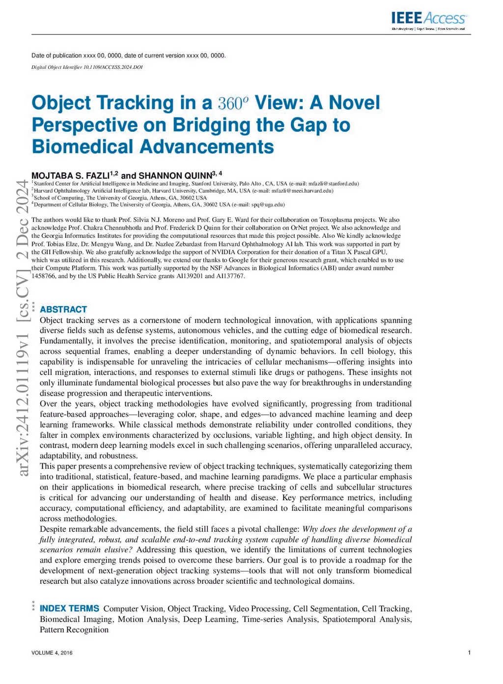 Object tracking is a fundamental tool in modern innovation, with applications in defense systems, autonomous vehicles, and biomedical research. It enables precise identification, monitoring, and spatiotemporal analysis of objects across sequential frames, providing insights into dynamic behaviors. In cell biology, object tracking is vital for uncovering cellular mechanisms, such as migration, interactions, and responses to drugs or pathogens. These insights drive breakthroughs in understanding disease progression and therapeutic interventions. Over time, object tracking methods have evolved from traditional feature-based approaches to advanced machine learning and deep learning frameworks. While classical methods are reliable in controlled settings, they struggle in complex environments with occlusions, variable lighting, and high object density. Deep learning models address these challenges by delivering greater accuracy, adaptability, and robustness. This review categorizes object tracking techniques into traditional, statistical, feature-based, and machine learning paradigms, with a focus on biomedical applications. These methods are essential for tracking cells and subcellular structures, advancing our understanding of health and disease. Key performance metrics, including accuracy, efficiency, and adaptability, are discussed. The paper explores limitations of current methods and highlights emerging trends to guide the development of next-generation tracking systems for biomedical research and broader scientific domains.
