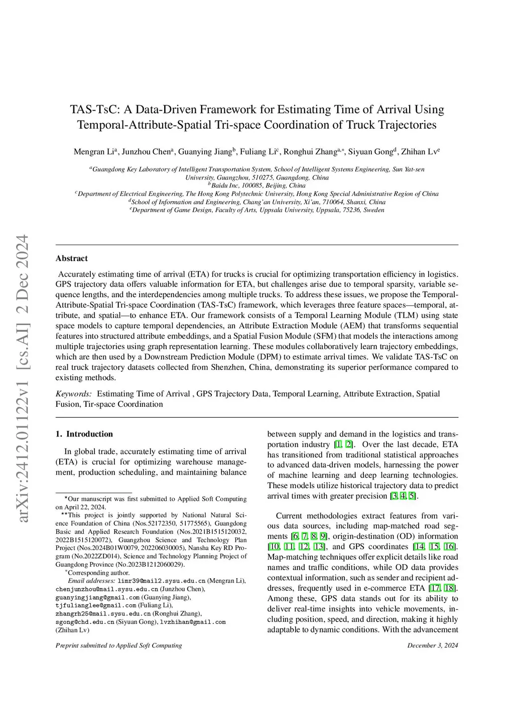TAS-TsC: A Data-Driven Framework for Estimating Time of Arrival Using