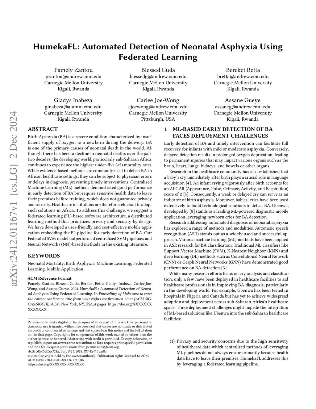HumekaFL: Automated Detection of Neonatal Asphyxia Using Federated