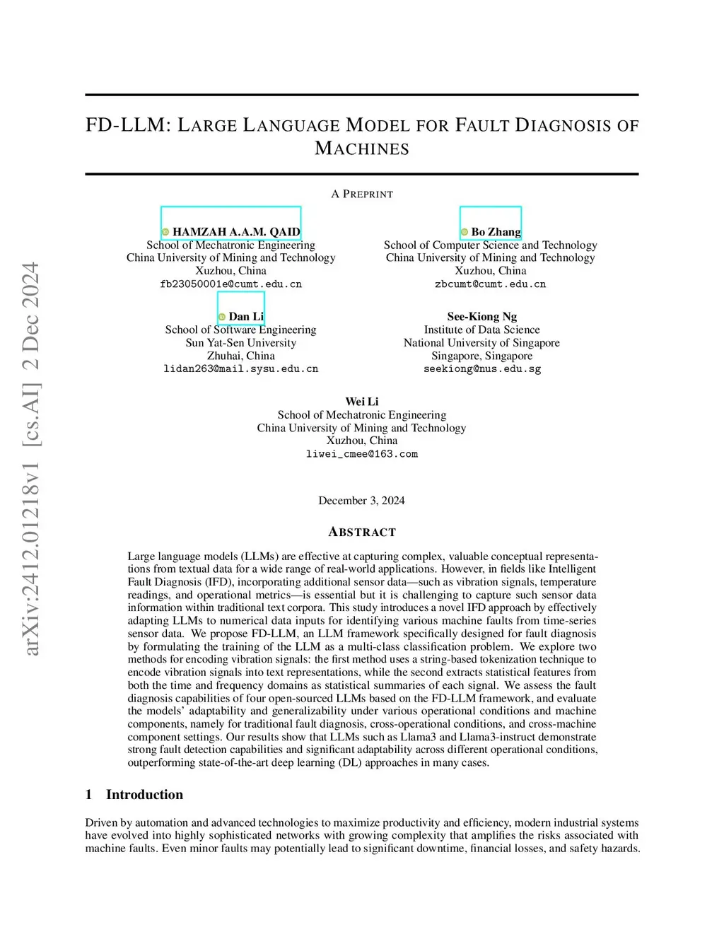 FD-LLM: Large Language Model for Fault Diagnosis of Machines