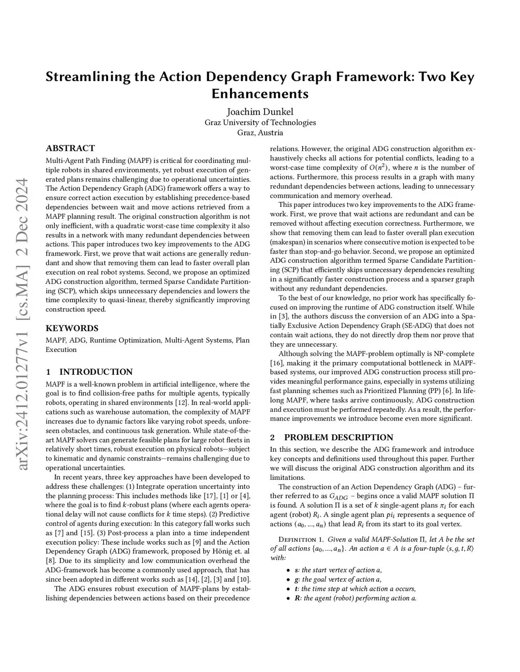 Multi Agent Path Finding (MAPF) is critical for coordinating multiple robots in shared environments, yet robust execution of generated plans remains challenging due to operational uncertainties. The Action Dependency Graph (ADG) framework offers a way to ensure correct action execution by establishing precedence-based dependencies between wait and move actions retrieved from a MAPF planning result. The original construction algorithm is not only inefficient, with a quadratic worst-case time complexity it also results in a network with many redundant dependencies between actions. This paper introduces two key improvements to the ADG framework. First, we prove that wait actions are generally redundant and show that removing them can lead to faster overall plan execution on real robot systems. Second, we propose an optimized ADG construction algorithm, termed Sparse Candidate Partitioning (SCP), which skips unnecessary dependencies and lowers the time complexity to quasi-linear, thereby significantly improving construction speed.