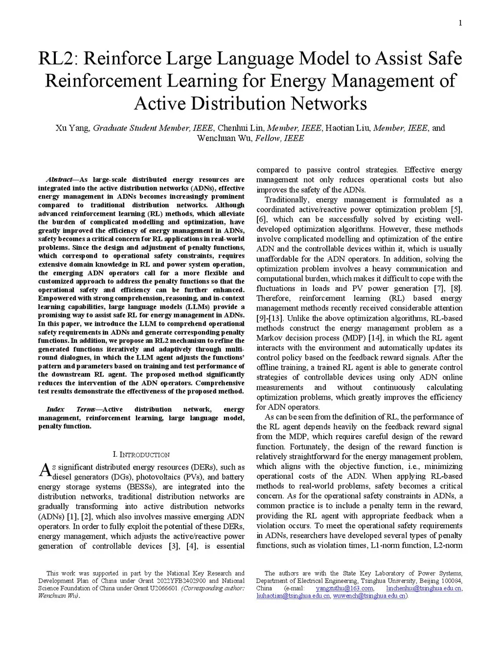 As large-scale distributed energy resources are integrated into the active distribution networks (ADNs), effective energy management in ADNs becomes increasingly prominent compared to traditional distribution networks. Although advanced reinforcement learning (RL) methods, which alleviate the burden of complicated modelling and optimization, have greatly improved the efficiency of energy management in ADNs, safety becomes a critical concern for RL applications in real-world problems. Since the design and adjustment of penalty functions, which correspond to operational safety constraints, requires extensive domain knowledge in RL and power system operation, the emerging ADN operators call for a more flexible and customized approach to address the penalty functions so that the operational safety and efficiency can be further enhanced. Empowered with strong comprehension, reasoning, and in-context learning capabilities, large language models (LLMs) provide a promising way to assist safe RL for energy management in ADNs. In this paper, we introduce the LLM to comprehend operational safety requirements in ADNs and generate corresponding penalty functions. In addition, we propose an RL2 mechanism to refine the generated functions iteratively and adaptively through multi-round dialogues, in which the LLM agent adjusts the functions' pattern and parameters based on training and test performance of the downstream RL agent. The proposed method significantly reduces the intervention of the ADN operators. Comprehensive test results demonstrate the effectiveness of the proposed method.