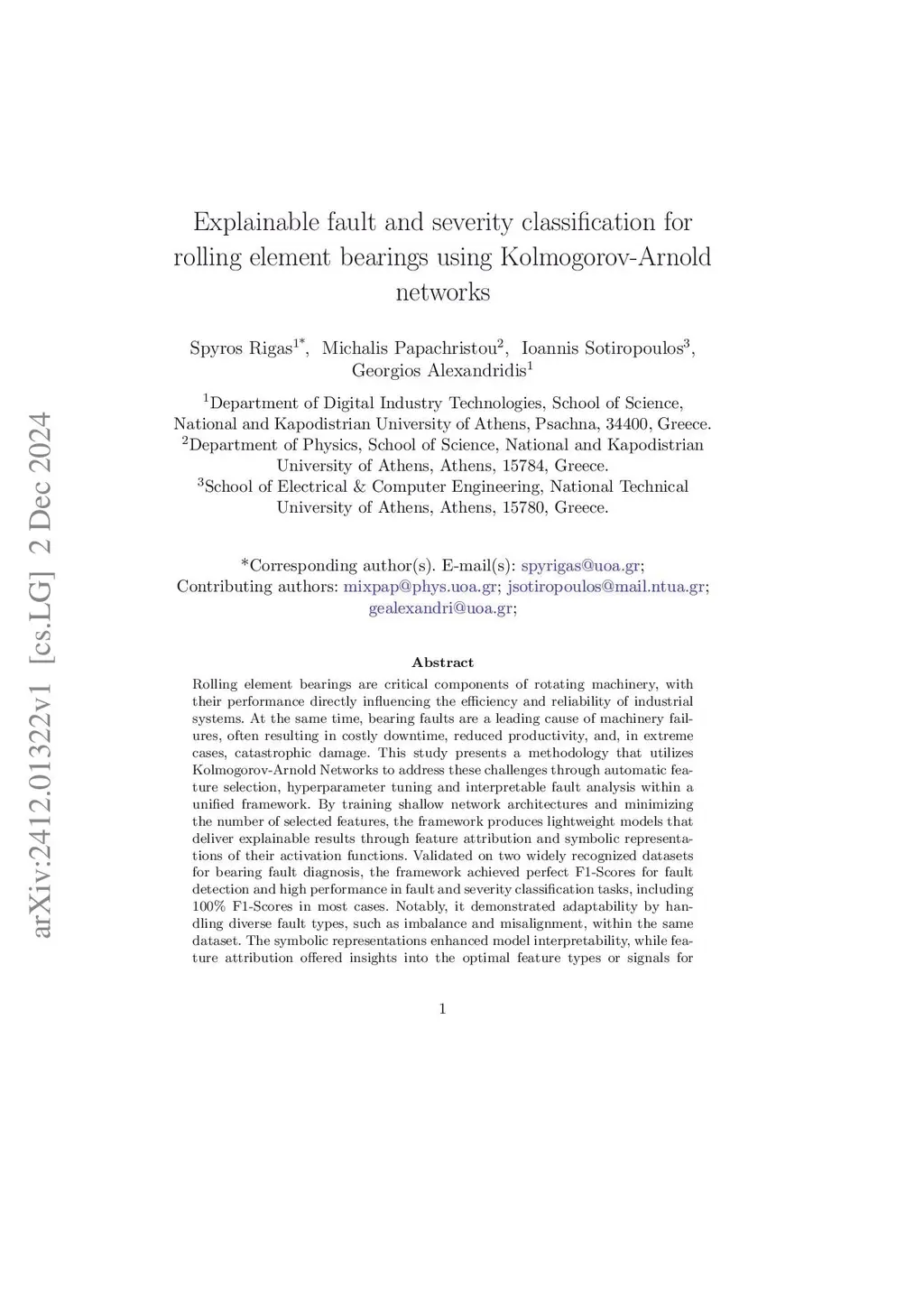 Explainable fault and severity classification for rolling element bearings using Kolmogorov-Arnold networks