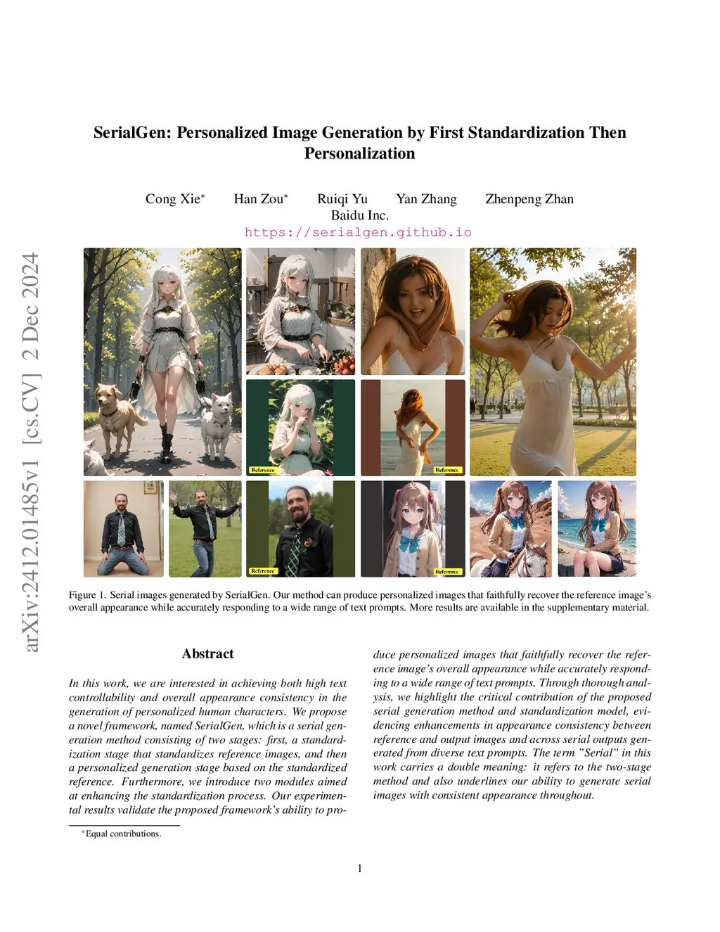 In this work, we are interested in achieving both high text controllability and whole-body appearance consistency in the generation of personalized human characters. We propose a novel framework, named SerialGen, which is a serial generation method consisting of two stages: first, a standardization stage that standardizes reference images, and then a personalized generation stage based on the standardized reference. Furthermore, we introduce two modules aimed at enhancing the standardization process. Our experimental results validate the proposed framework's ability to produce personalized images that faithfully recover the reference image's whole-body appearance while accurately responding to a wide range of text prompts. Through thorough analysis, we highlight the critical contribution of the proposed serial generation method and standardization model, evidencing enhancements in appearance consistency between reference and output images and across serial outputs generated from diverse text prompts. The term "Serial" in this work carries a double meaning: it refers to the two-stage method and also underlines our ability to generate serial images with consistent appearance throughout.