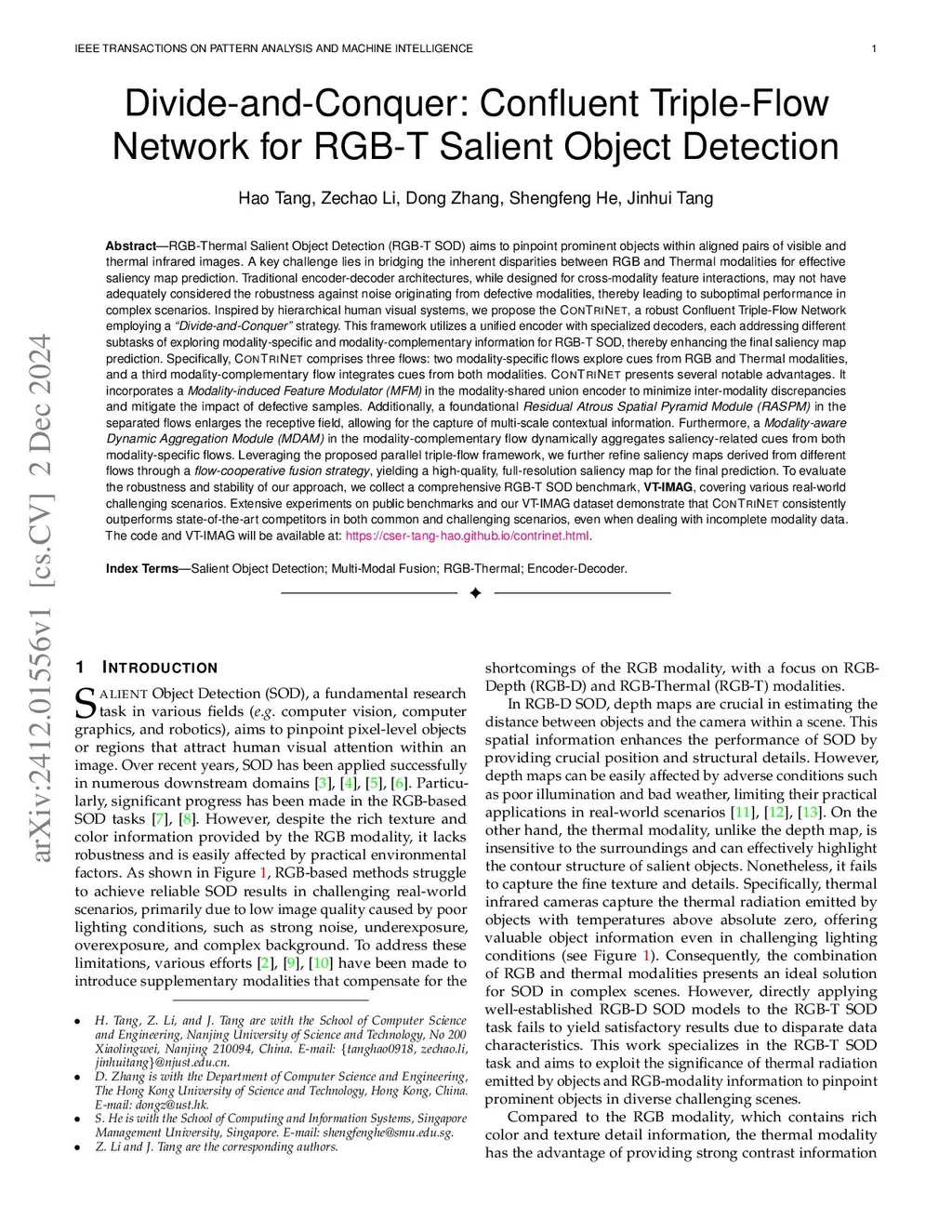 Divide-and-Conquer: Confluent Triple-Flow Network for RGB-T Salient