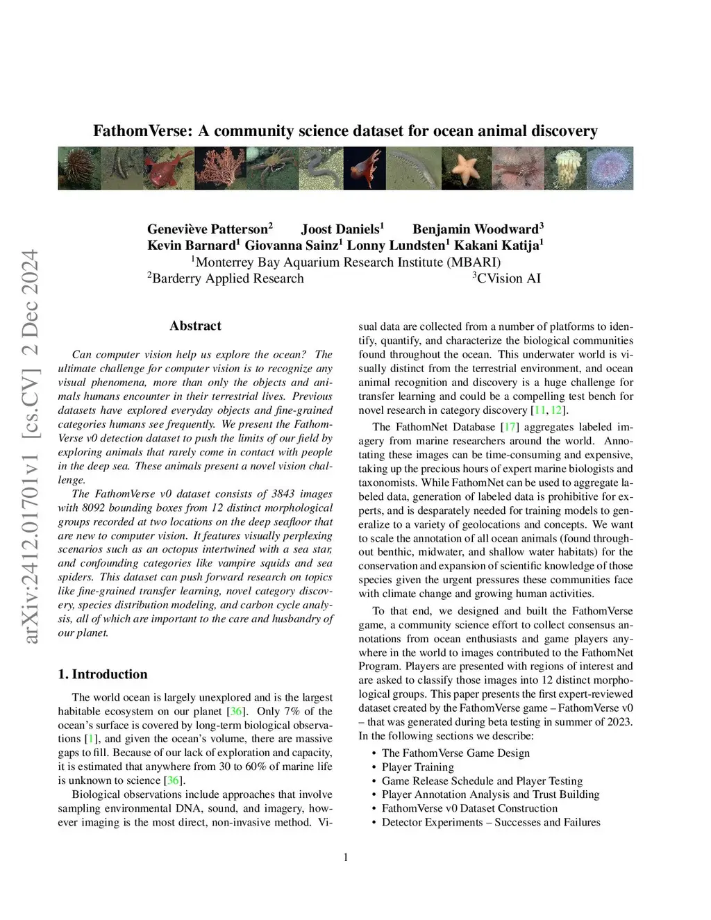 Can computer vision help us explore the ocean? The ultimate challenge for computer vision is to recognize any visual phenomena, more than only the objects and animals humans encounter in their terrestrial lives. Previous datasets have explored everyday objects and fine-grained categories humans see frequently. We present the FathomVerse v0 detection dataset to push the limits of our field by exploring animals that rarely come in contact with people in the deep sea. These animals present a novel vision challenge. The FathomVerse v0 dataset consists of 3843 images with 8092 bounding boxes from 12 distinct morphological groups recorded at two locations on the deep seafloor that are new to computer vision. It features visually perplexing scenarios such as an octopus intertwined with a sea star, and confounding categories like vampire squids and sea spiders. This dataset can push forward research on topics like fine-grained transfer learning, novel category discovery, species distribution modeling, and carbon cycle analysis, all of which are important to the care and husbandry of our planet.