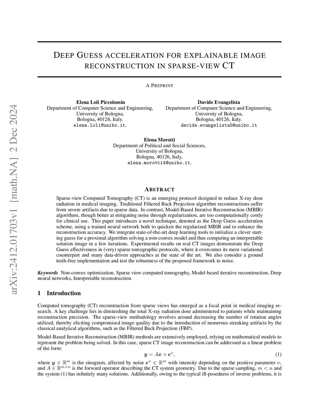 Sparse-view Computed Tomography (CT) is an emerging protocol designed to reduce X-ray dose radiation in medical imaging. Traditional Filtered Back Projection algorithm reconstructions suffer from severe artifacts due to sparse data. In contrast, Model-Based Iterative Reconstruction (MBIR) algorithms, though better at mitigating noise through regularization, are too computationally costly for clinical use. This paper introduces a novel technique, denoted as the Deep Guess acceleration scheme, using a trained neural network both to quicken the regularized MBIR and to enhance the reconstruction accuracy. We integrate state-of-the-art deep learning tools to initialize a clever starting guess for a proximal algorithm solving a non-convex model and thus computing an interpretable solution image in a few iterations. Experimental results on real CT images demonstrate the Deep Guess effectiveness in (very) sparse tomographic protocols, where it overcomes its mere variational counterpart and many data-driven approaches at the state of the art. We also consider a ground truth-free implementation and test the robustness of the proposed framework to noise.