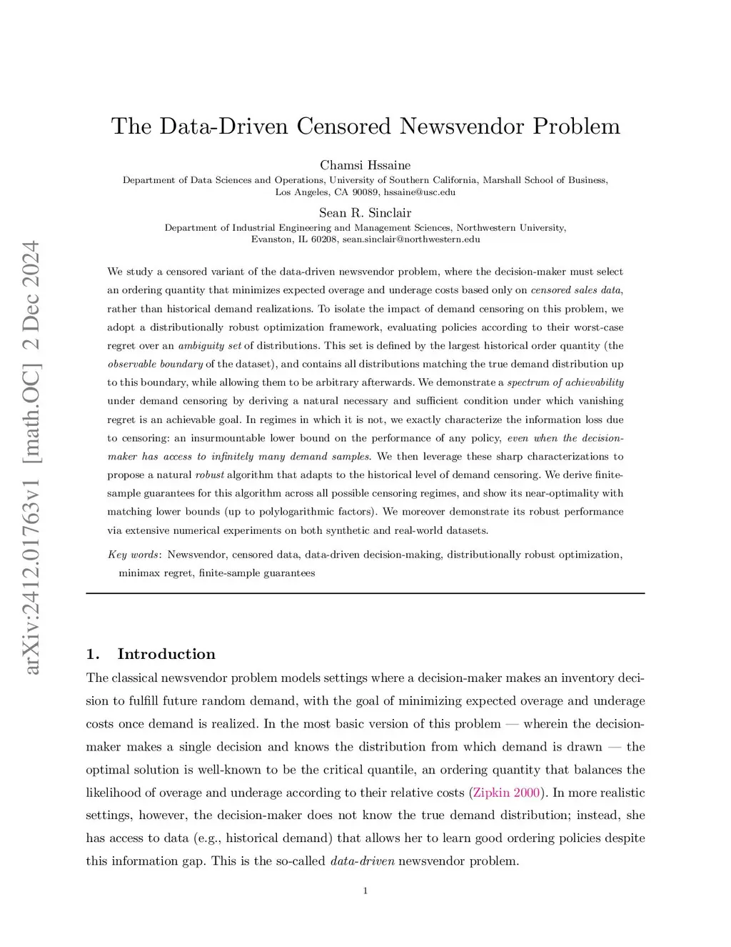 The Data-Driven Censored Newsvendor Problem