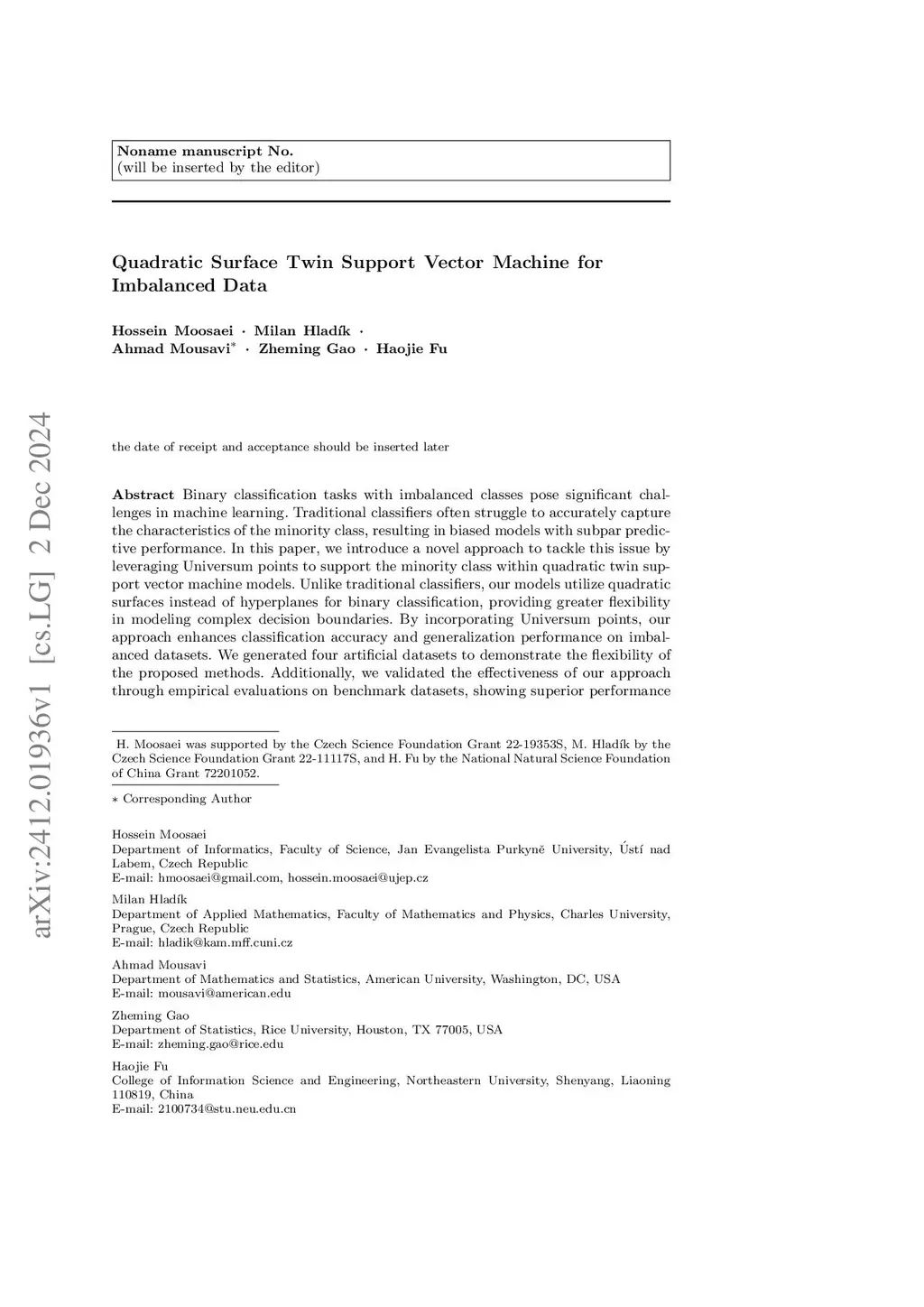 Kernel-Free Universum Quadratic Surface Twin Support Vector Machines for Imbalanced Data