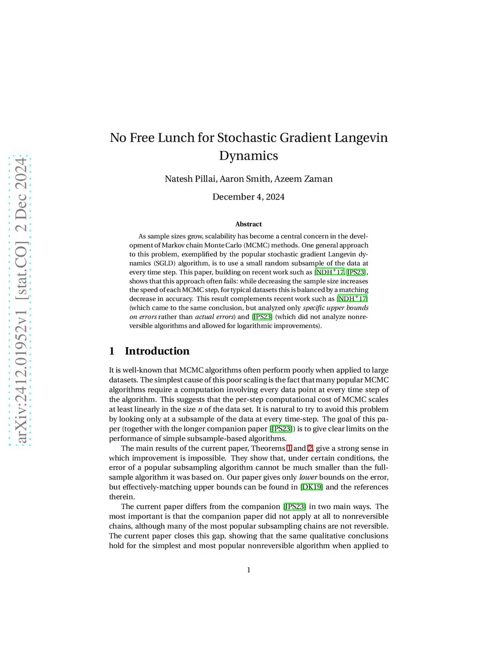 As sample sizes grow, scalability has become a central concern in the development of Markov chain Monte Carlo (MCMC) methods. One general approach to this problem, exemplified by the popular stochastic gradient Langevin dynamics (SGLD) algorithm, is to use a small random subsample of the data at every time step. This paper, building on recent work such as \cite{nagapetyan2017true,JohndrowJamesE2020NFLf}, shows that this approach often fails: while decreasing the sample size increases the speed of each MCMC step, for typical datasets this is balanced by a matching decrease in accuracy. This result complements recent work such as \cite{nagapetyan2017true} (which came to the same conclusion, but analyzed only specific upper bounds on errors rather than actual errors) and \cite{JohndrowJamesE2020NFLf} (which did not analyze nonreversible algorithms and allowed for logarithmic improvements).