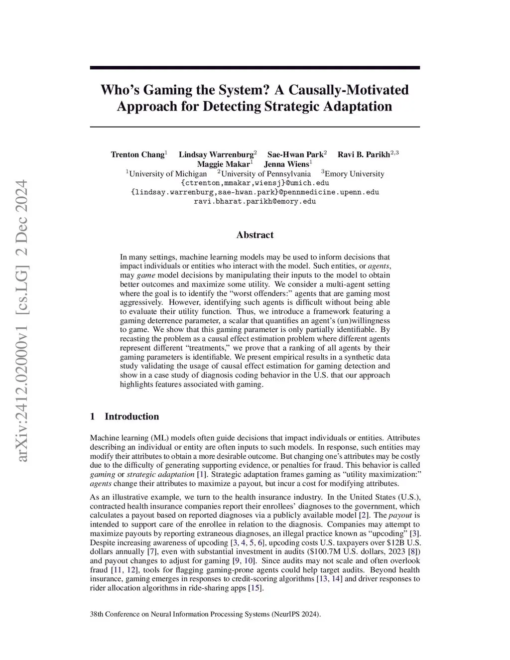 Who's Gaming the System? A Causally-Motivated Approach for Detecting