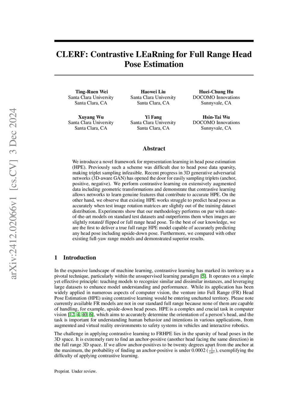 CLERF: Contrastive LEaRning for Full Range Head Pose Estimation