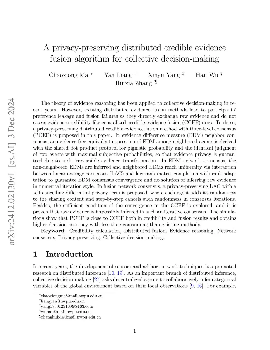 A privacy-preserving distributed credible evidence fusion algorithm for