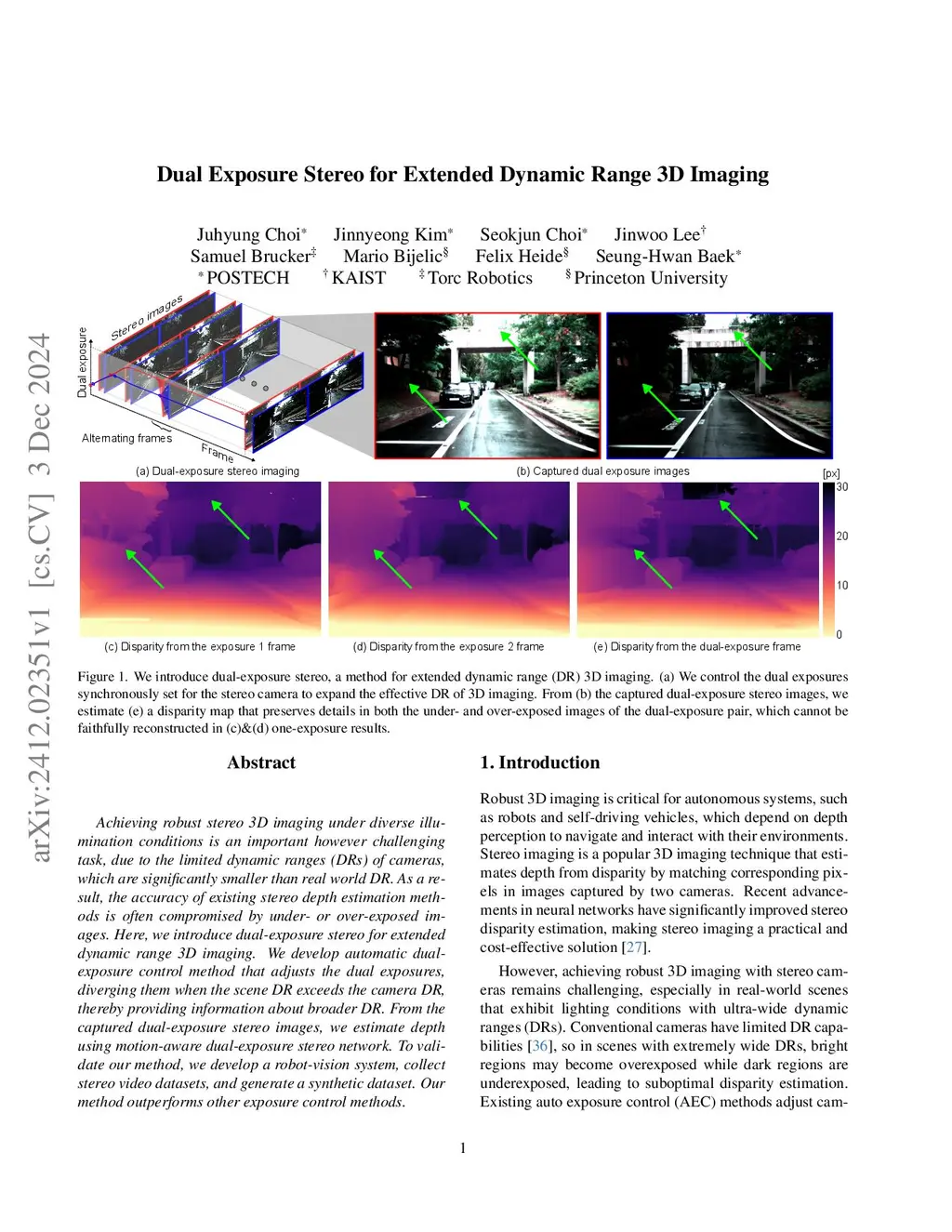 Dual Exposure Stereo for Extended Dynamic Range 3D Imaging