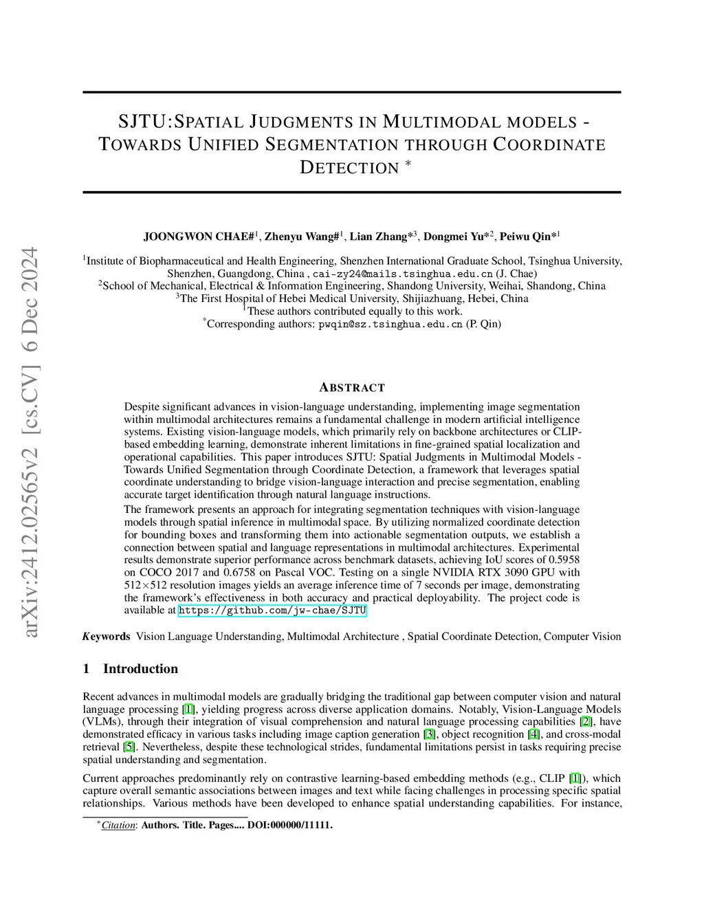 SJTU:Spatial judgments in multimodal models towards unified segmentation through coordinate detection