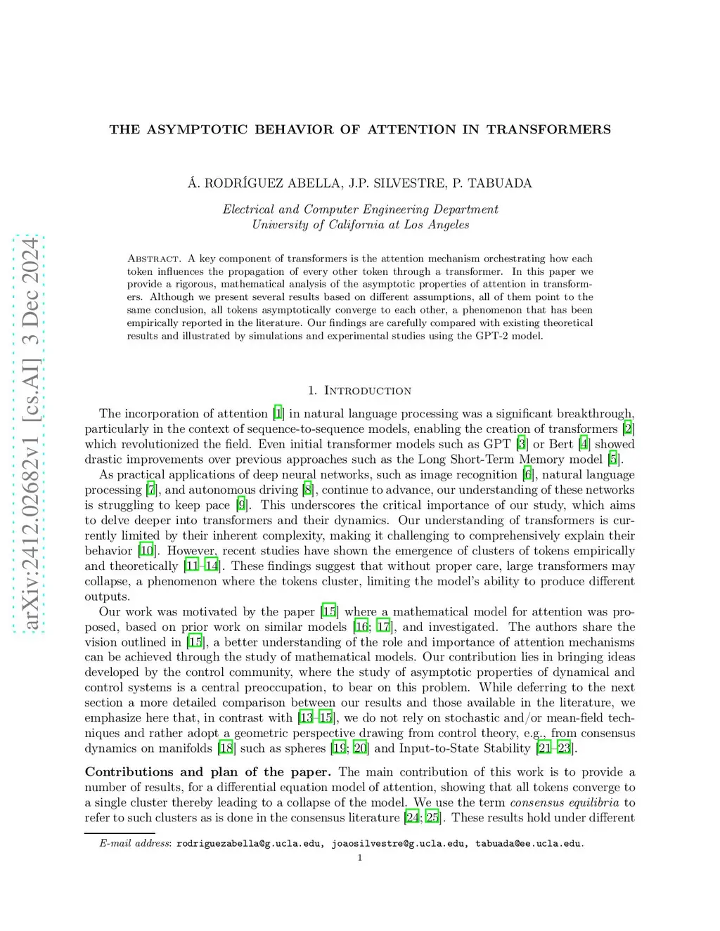 The transformer architecture has become the foundation of modern Large Language Models (LLMs), yet its theoretical properties are still not well understood. As with classic neural networks, a common approach to improve these models is to increase their size and depth. However, such strategies may be suboptimal, as several works have shown that adding more layers yields increasingly diminishing returns. More importantly, prior studies have shown that increasing depth may lead to model collapse, i.e., all the tokens converge to a single cluster, undermining the ability of LLMs to generate diverse outputs. Building on differential equation models for the transformer dynamics, we prove that all the tokens in a transformer asymptotically converge to a cluster as depth increases. At the technical level we leverage tools from control theory, including consensus dynamics on manifolds and input-to-state stability (ISS). We then extend our analysis to autoregressive models, exploiting their structure to further generalize the theoretical guarantees.