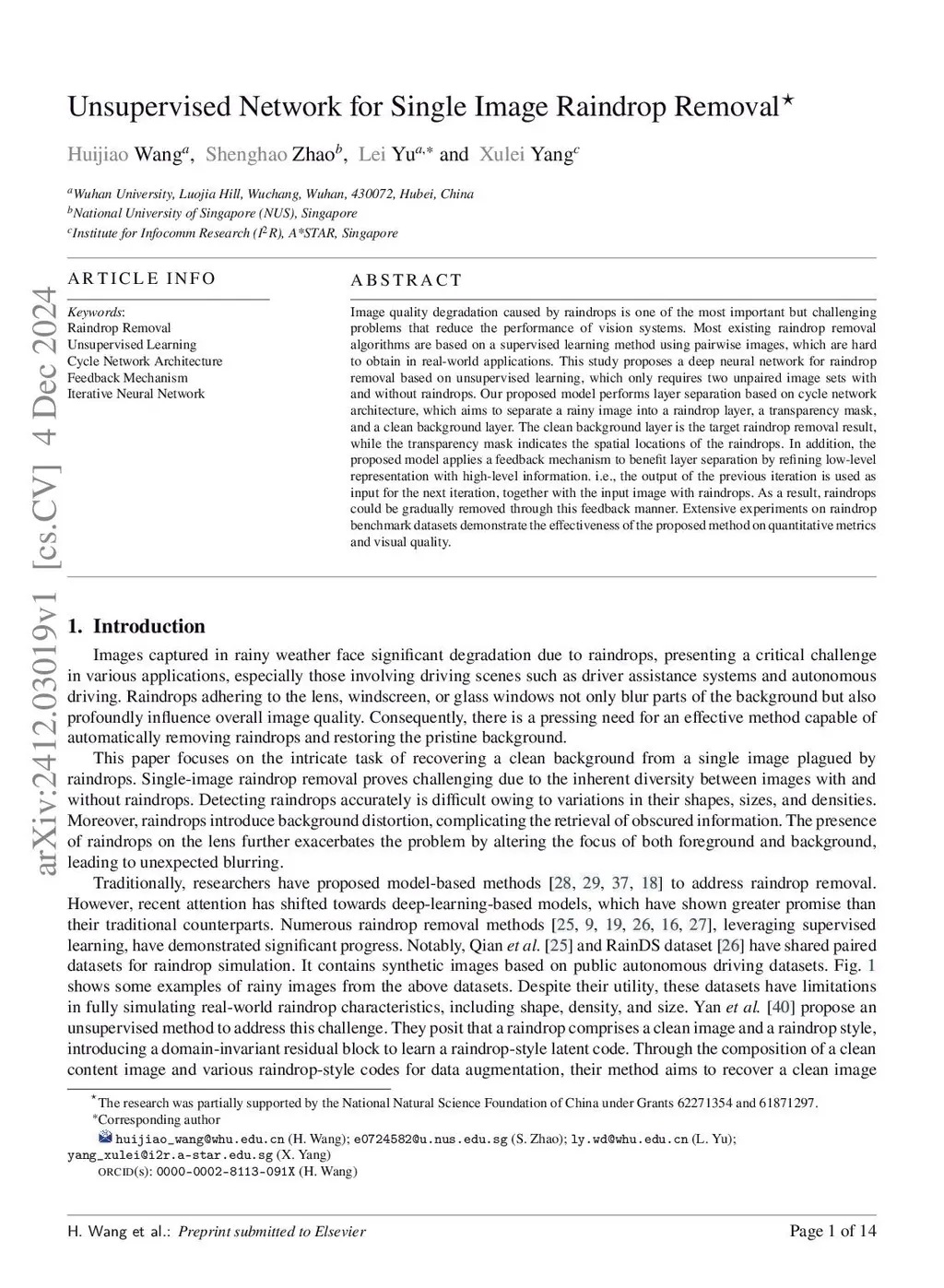 Unsupervised Network for Single Image Raindrop Removal