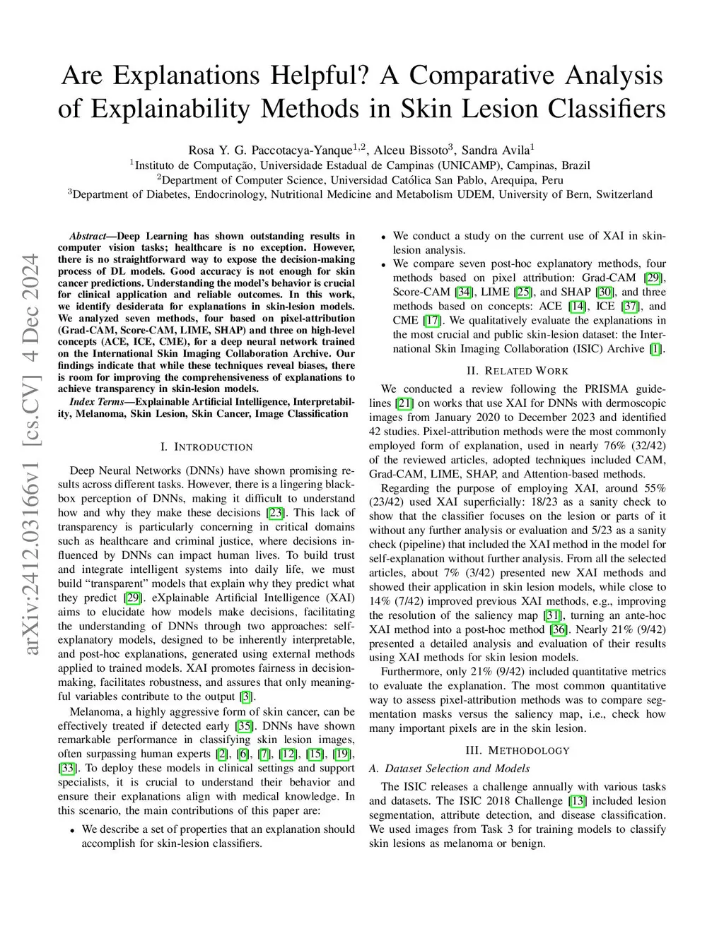 Deep Learning has shown outstanding results in computer vision tasks; healthcare is no exception. However, there is no straightforward way to expose the decision-making process of DL models. Good accuracy is not enough for skin cancer predictions. Understanding the model's behavior is crucial for clinical application and reliable outcomes. In this work, we identify desiderata for explanations in skin-lesion models. We analyzed seven methods, four based on pixel-attribution (Grad-CAM, Score-CAM, LIME, SHAP) and three on high-level concepts (ACE, ICE, CME), for a deep neural network trained on the International Skin Imaging Collaboration Archive. Our findings indicate that while these techniques reveal biases, there is room for improving the comprehensiveness of explanations to achieve transparency in skin-lesion models.