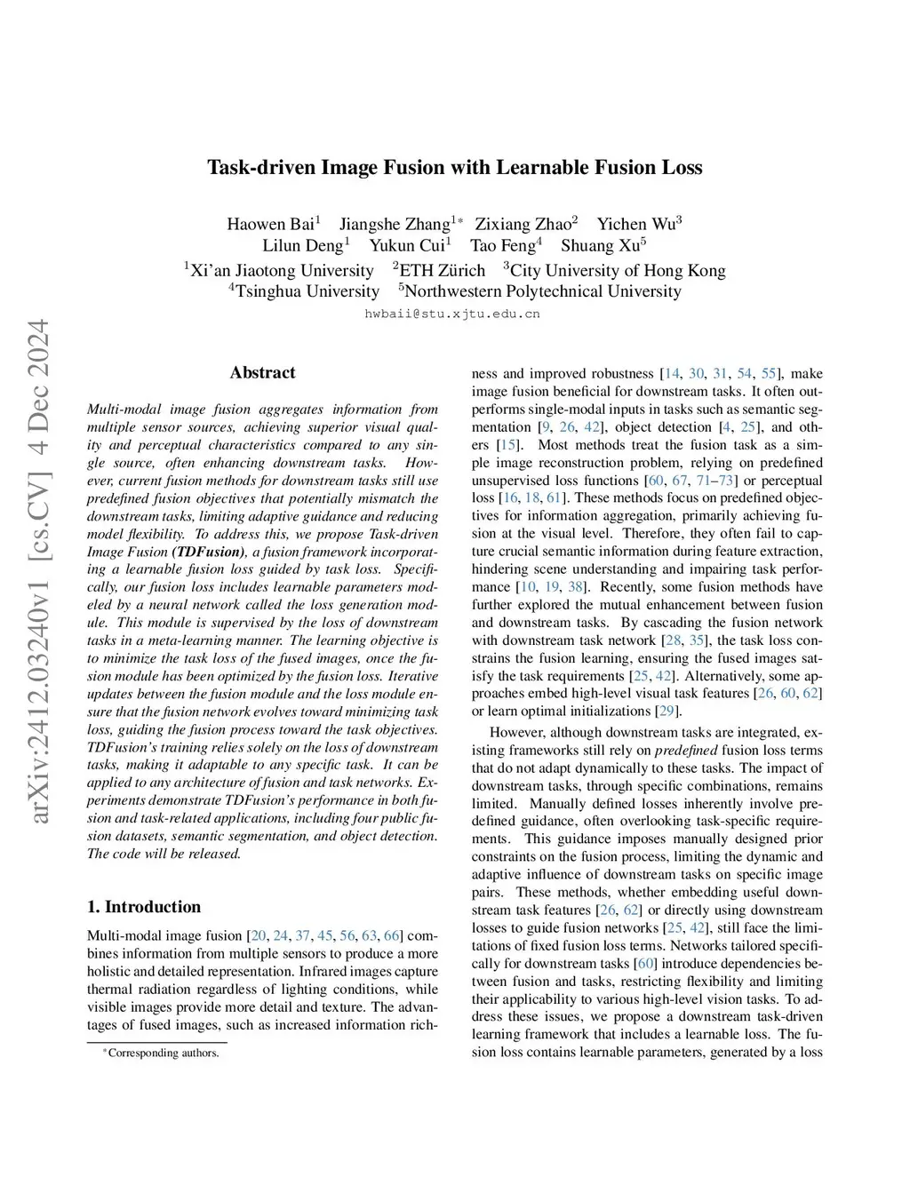 Multi-modal image fusion aggregates information from multiple sensor sources, achieving superior visual quality and perceptual features compared to single-source images, often improving downstream tasks. However, current fusion methods for downstream tasks still use predefined fusion objectives that potentially mismatch the downstream tasks, limiting adaptive guidance and reducing model flexibility. To address this, we propose Task-driven Image Fusion (TDFusion), a fusion framework incorporating a learnable fusion loss guided by task loss. Specifically, our fusion loss includes learnable parameters modeled by a neural network called the loss generation module. This module is supervised by the downstream task loss in a meta-learning manner. The learning objective is to minimize the task loss of fused images after optimizing the fusion module with the fusion loss. Iterative updates between the fusion module and the loss module ensure that the fusion network evolves toward minimizing task loss, guiding the fusion process toward the task objectives. TDFusion's training relies entirely on the downstream task loss, making it adaptable to any specific task. It can be applied to any architecture of fusion and task networks. Experiments demonstrate TDFusion's performance through fusion experiments conducted on four different datasets, in addition to evaluations on semantic segmentation and object detection tasks.