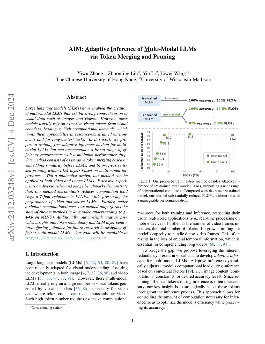 AIM: Adaptive Inference of Multi-Modal LLMs via Token Merging and Pruning