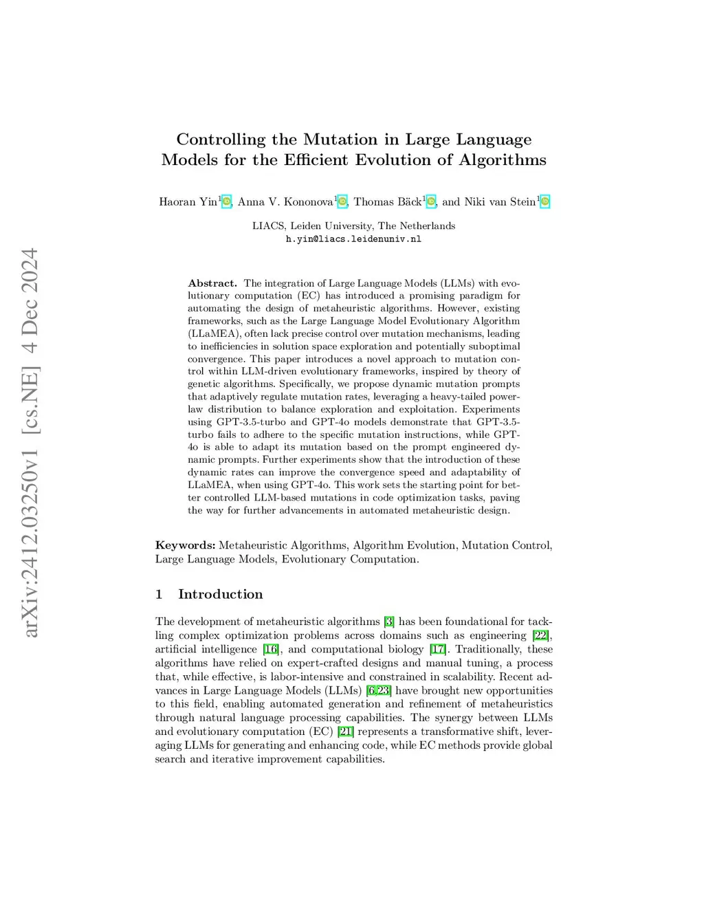 The integration of Large Language Models (LLMs) with evolutionary computation (EC) has introduced a promising paradigm for automating the design of metaheuristic algorithms. However, existing frameworks, such as the Large Language Model Evolutionary Algorithm (LLaMEA), often lack precise control over mutation mechanisms, leading to inefficiencies in solution space exploration and potentially suboptimal convergence. This paper introduces a novel approach to mutation control within LLM-driven evolutionary frameworks, inspired by theory of genetic algorithms. Specifically, we propose dynamic mutation prompts that adaptively regulate mutation rates, leveraging a heavy-tailed power-law distribution to balance exploration and exploitation. Experiments using GPT-3.5-turbo and GPT-4o models demonstrate that GPT-3.5-turbo fails to adhere to the specific mutation instructions, while GPT-4o is able to adapt its mutation based on the prompt engineered dynamic prompts. Further experiments show that the introduction of these dynamic rates can improve the convergence speed and adaptability of LLaMEA, when using GPT-4o. This work sets the starting point for better controlled LLM-based mutations in code optimization tasks, paving the way for further advancements in automated metaheuristic design.