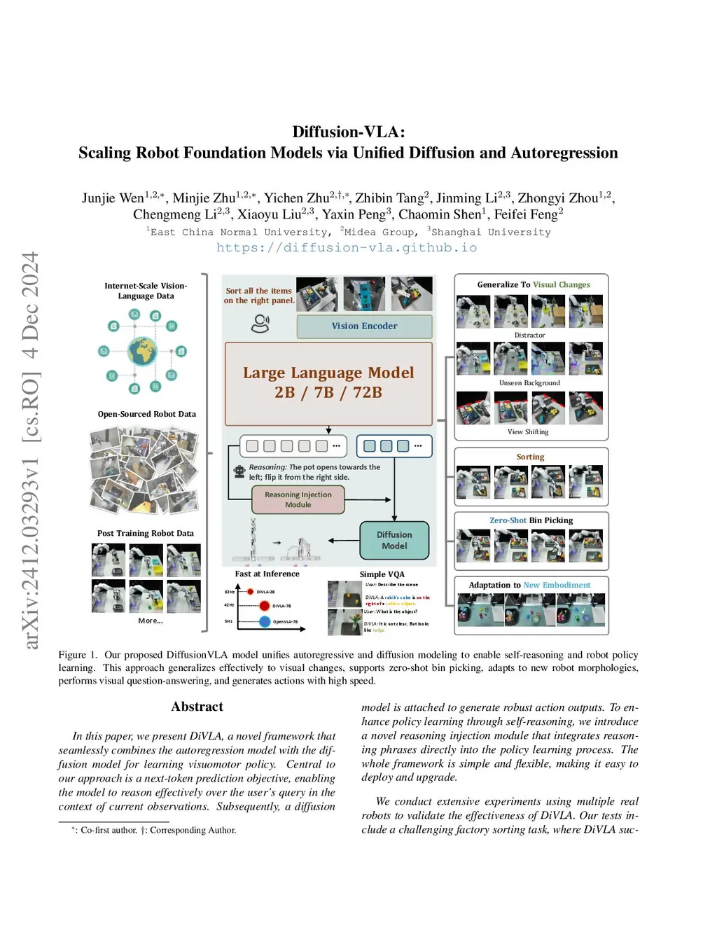 Diffusion-VLA: Generalizable and Interpretable Robot Foundation Model via Self-Generated Reasoning