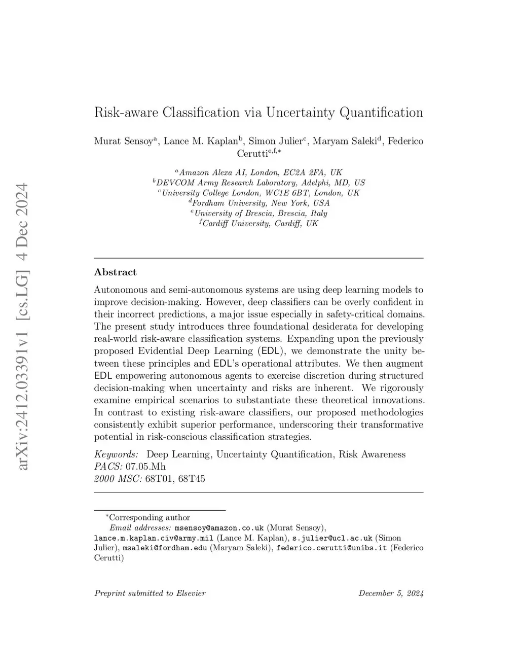 Autonomous and semi-autonomous systems are using deep learning models to improve decision-making. However, deep classifiers can be overly confident in their incorrect predictions, a major issue especially in safety-critical domains. The present study introduces three foundational desiderata for developing real-world risk-aware classification systems. Expanding upon the previously proposed Evidential Deep Learning (EDL), we demonstrate the unity between these principles and EDL's operational attributes. We then augment EDL empowering autonomous agents to exercise discretion during structured decision-making when uncertainty and risks are inherent. We rigorously examine empirical scenarios to substantiate these theoretical innovations. In contrast to existing risk-aware classifiers, our proposed methodologies consistently exhibit superior performance, underscoring their transformative potential in risk-conscious classification strategies.