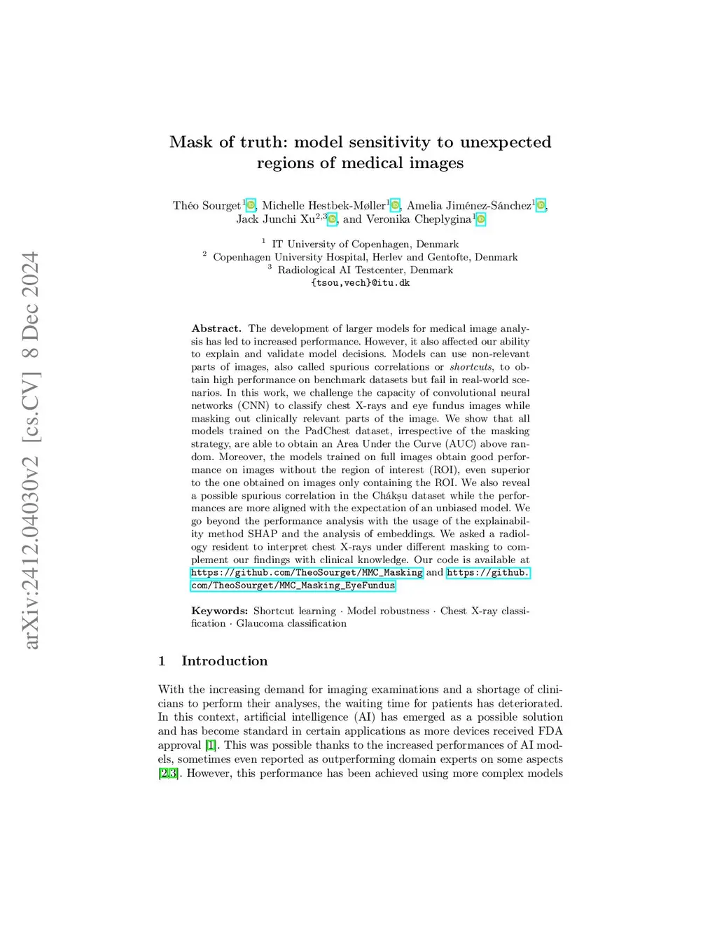 Mask of truth: model sensitivity to unexpected regions of medical images
