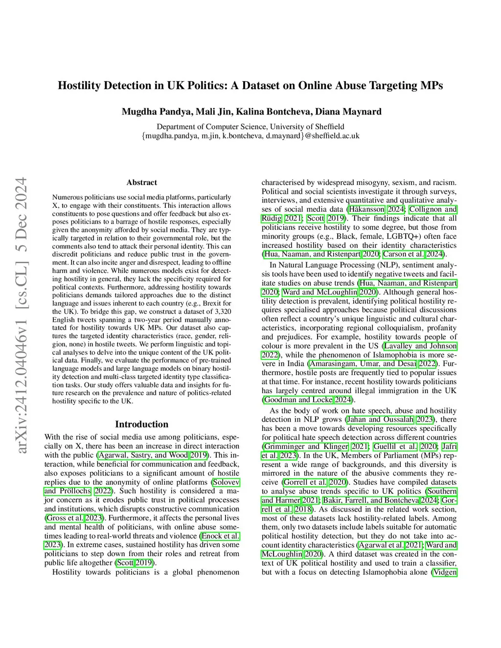 Hostility Detection in UK Politics: A Dataset on Online Abuse Targeting