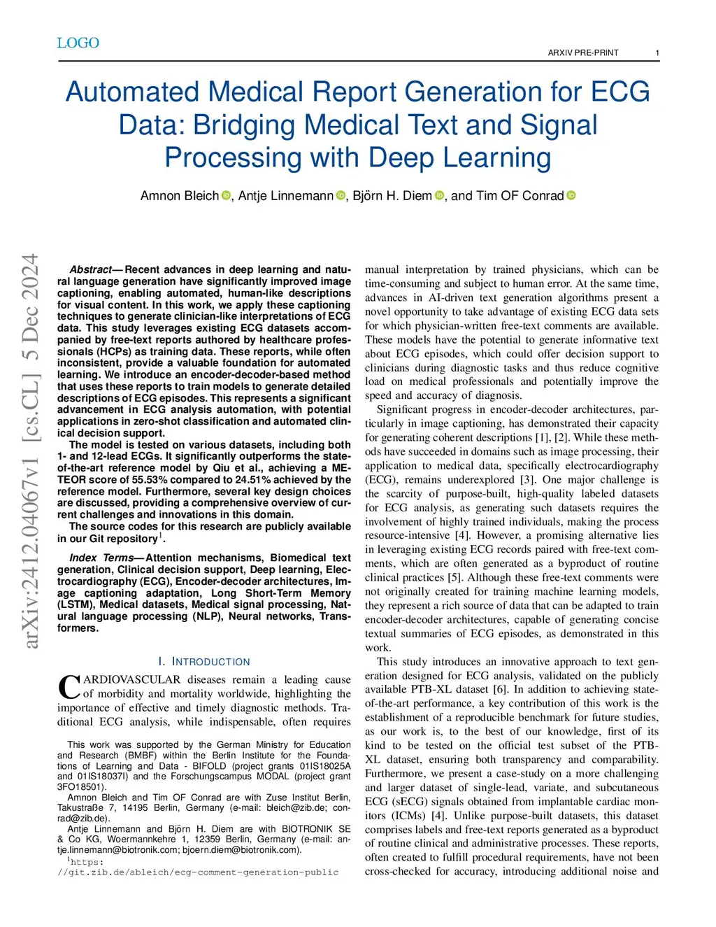 Automated Medical Report Generation for ECG Data: Bridging Medical Text