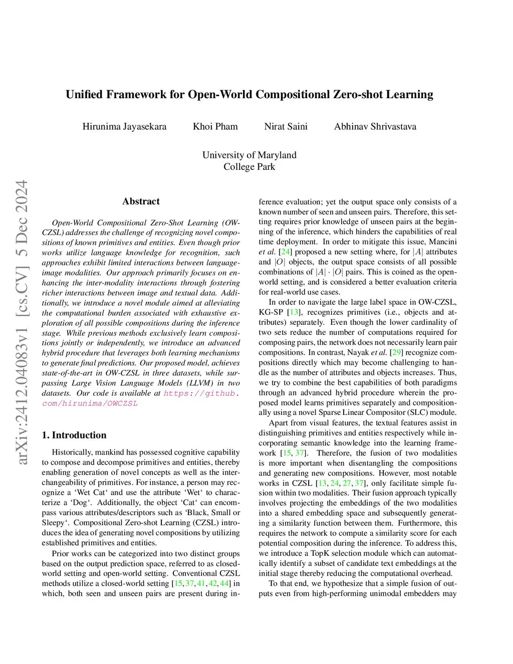 Unified Framework for Open-World Compositional Zero-shot Learning