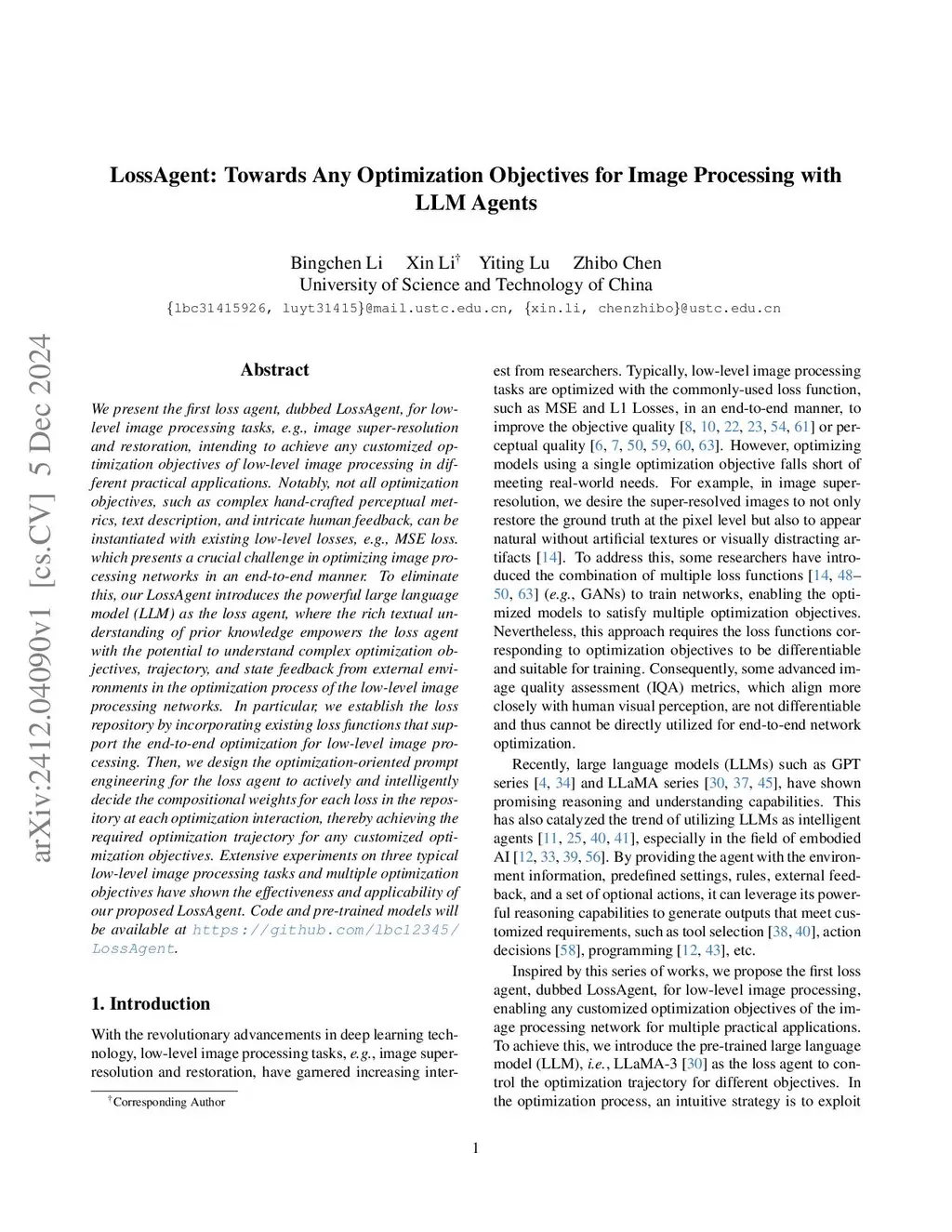 LossAgent: Towards Any Optimization Objectives for Image Processing with LLM Agents
