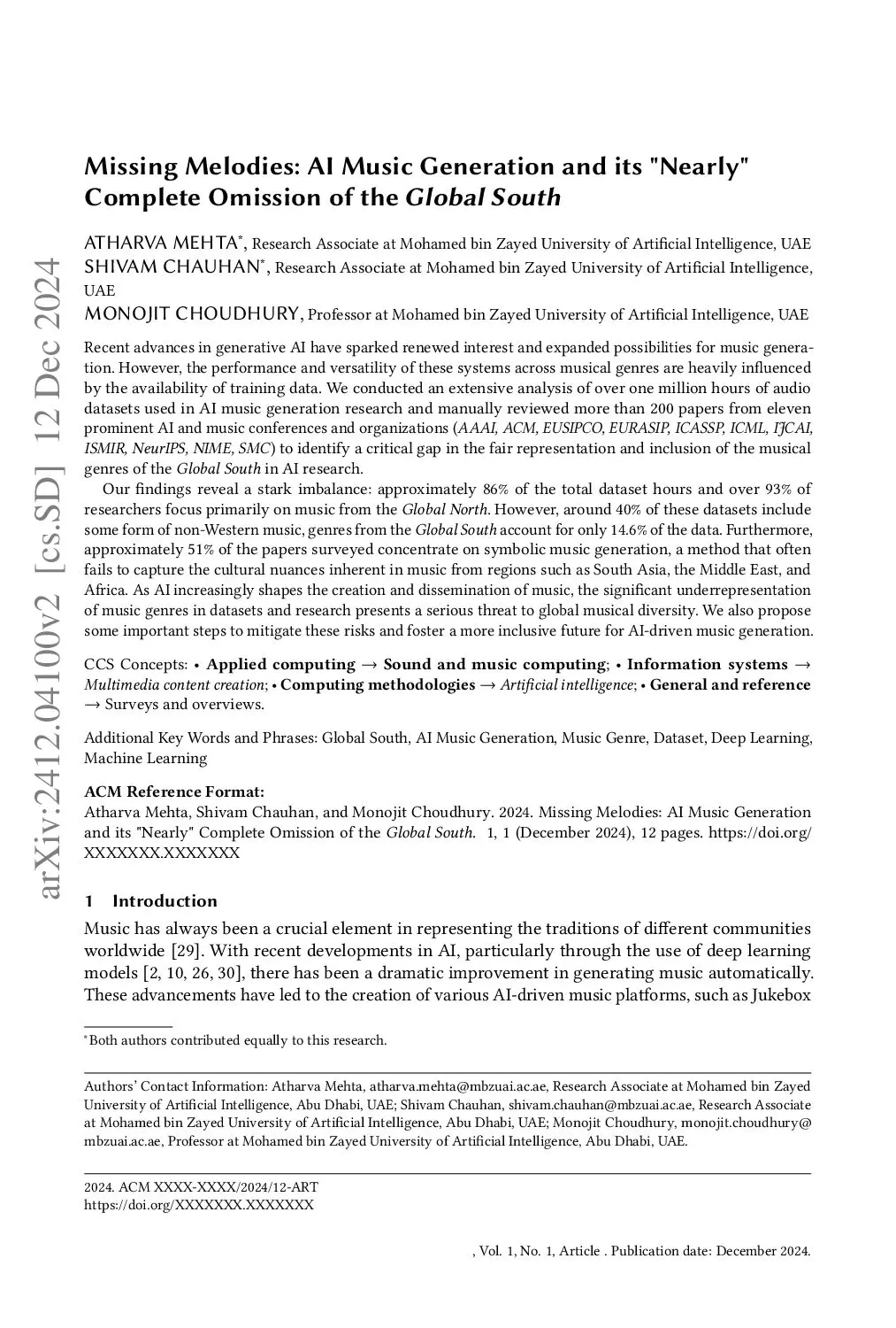 Missing Melodies: AI Music Generation and its "Nearly" Complete Omission of the Global South