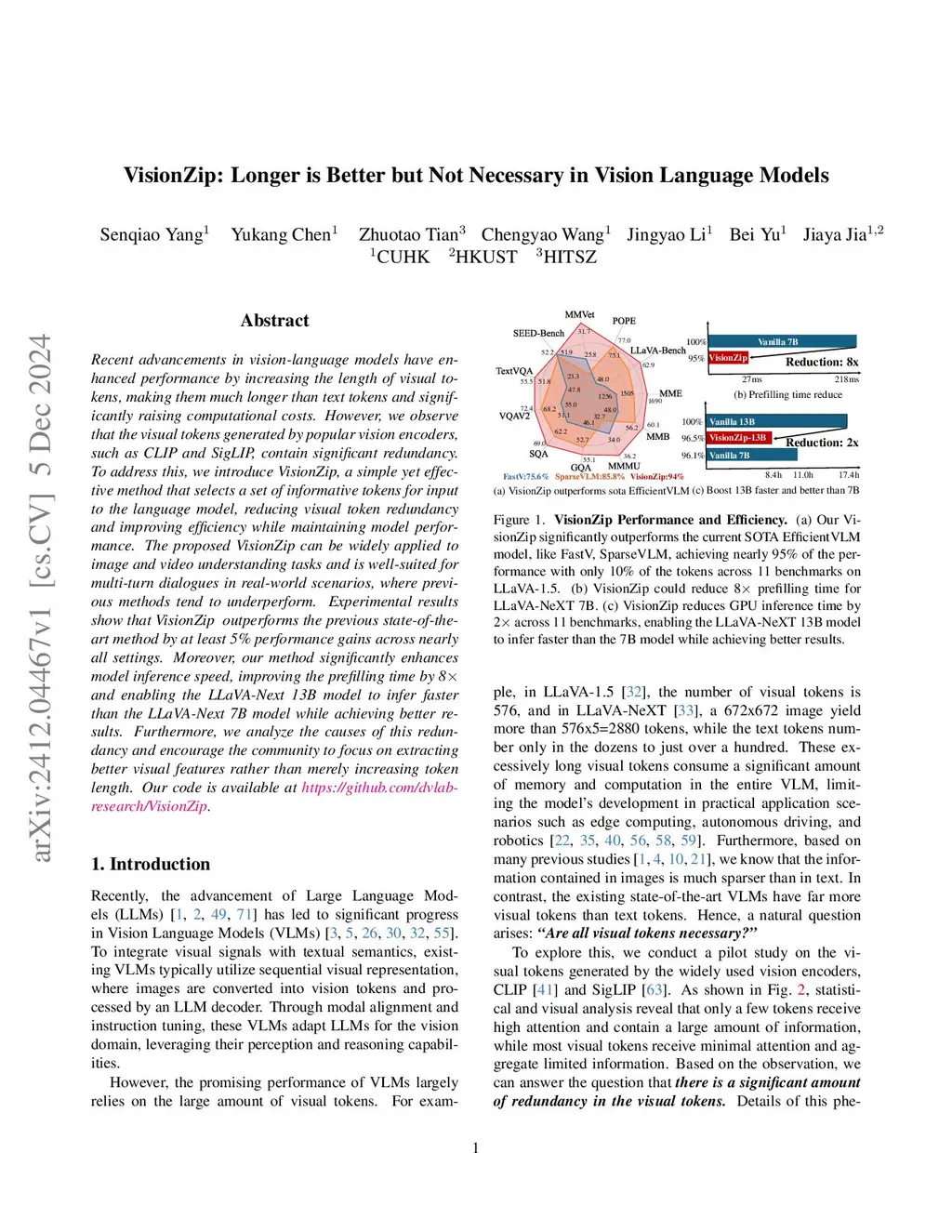 VisionZip: Longer is Better but Not Necessary in Vision Language Models